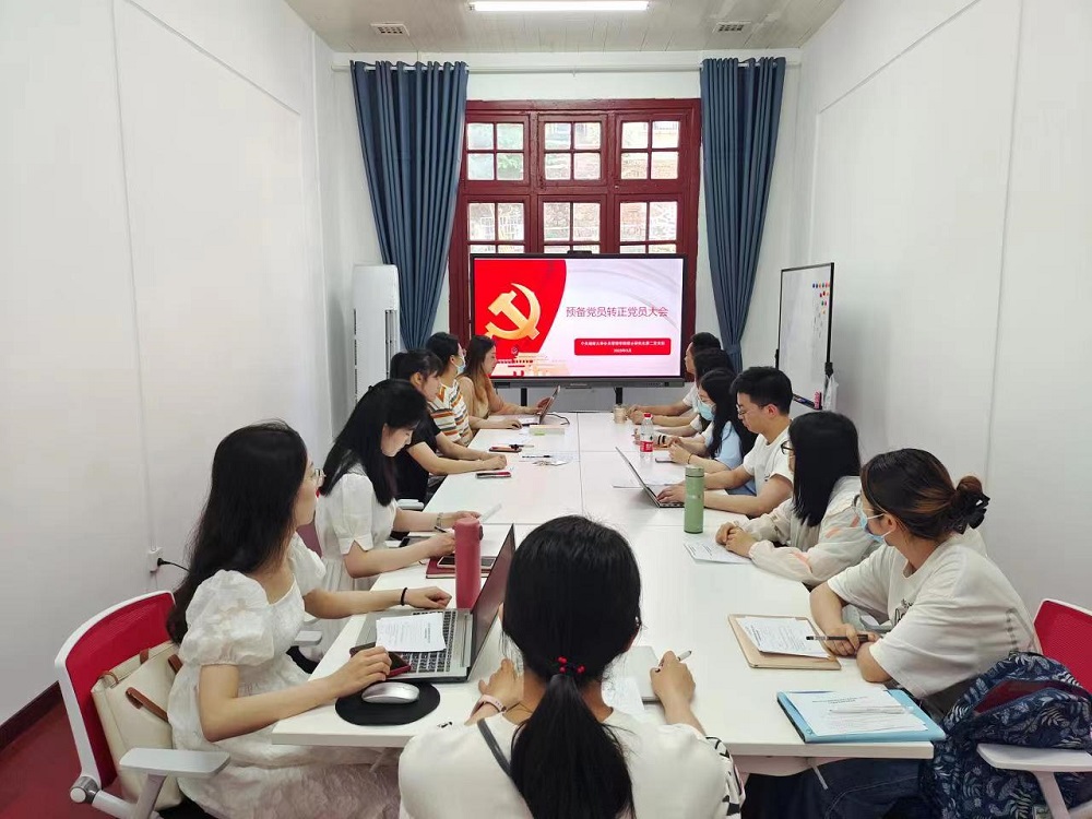 硕士研究生第二党支部在院楼214室召开预备党员转正党员大会暨新时代十年发展成就党课专题学习会。支部书记张佳乐主持会议,支部全体党员同志参加。