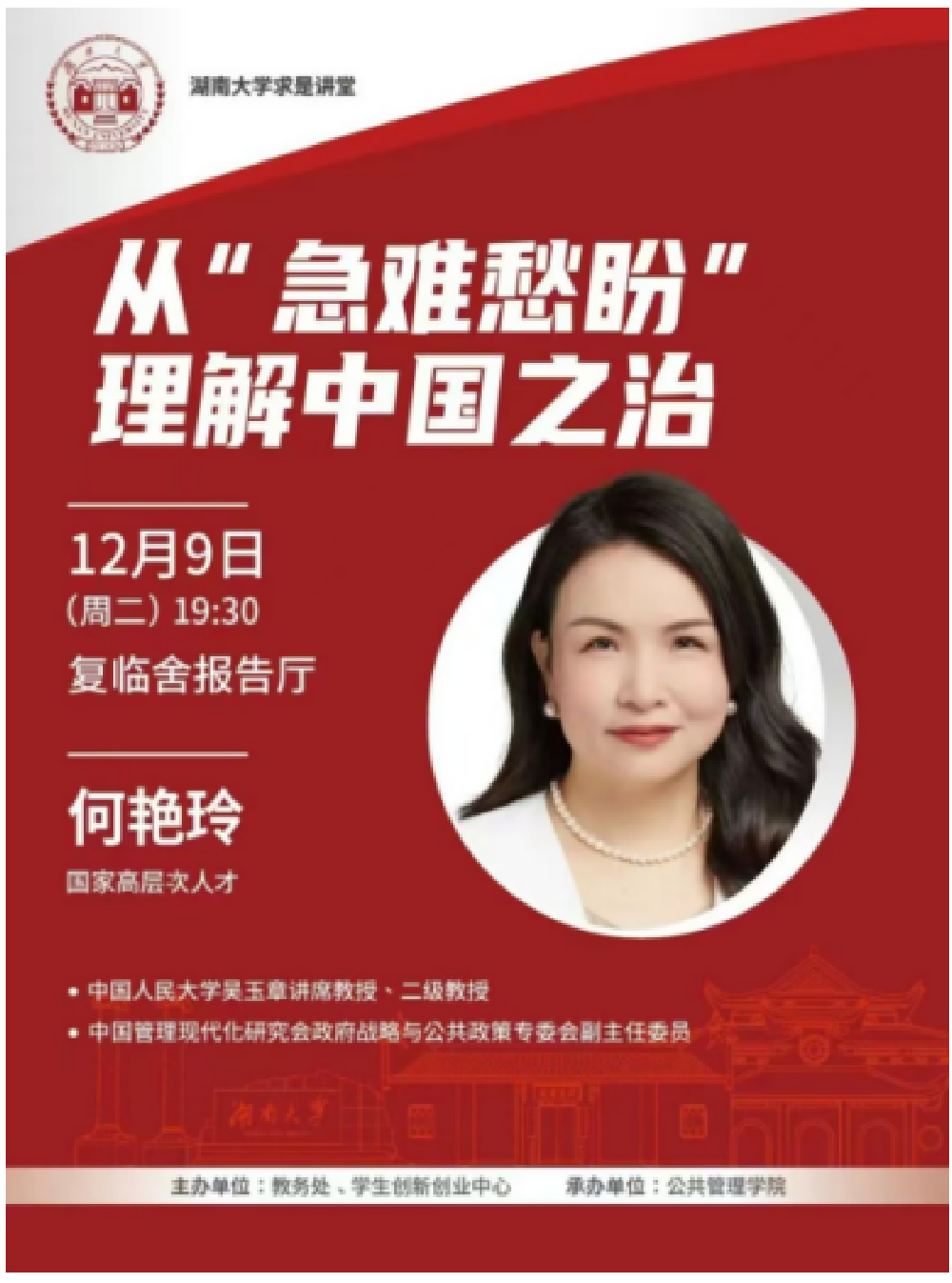 回首2025,是湖大公管人本科固本、研究生拔尖、科研攻坚、平台聚力、党建领航、校友同心的一年;展望2026,我们将以更坚定的育人自信、更开阔的学术视野、更务实的治理效能、更温暖的文化传承,扎根湖湘,问道岳麓,奋力书写“十五五”高质量发展新答卷!