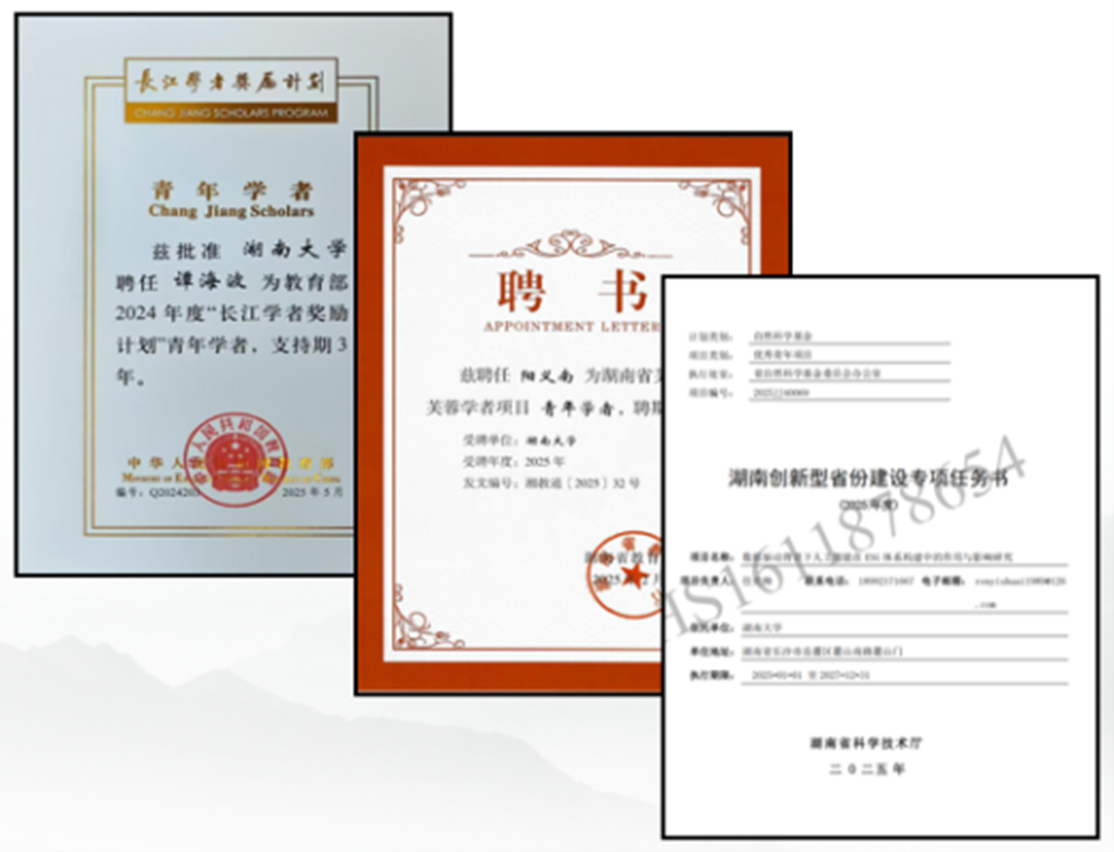 师资队伍扩容提质,学术影响力持续攀升。谭海波教授入选国家级高层次青年人才项目,阳义南获聘湖南省芙蓉学者奖励计划青年学者,任奕帅获湖南省自然科学基金优秀青年项目,夏畅获六间房