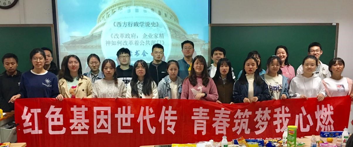 教授,硕士生导师李金龙老师出席并担任评议嘉宾,行管1801、1802班班长王琦珑、卢艺文联合主持,由 2018级本科生分享阅读了由丁煌所著的《西方行政学说史》以及戴维·奥斯本和特德·盖布勒合著的《改革政府》后的感悟与思考。大家围坐在一起,认真倾听,自由发言,平等交流,一同感受知识的魅力和分享的乐趣。