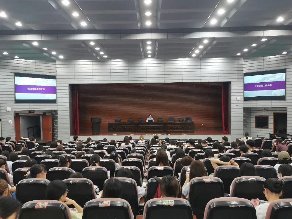 于法学楼报告厅开展疫情防控工作安排大会,此次大会由六间房