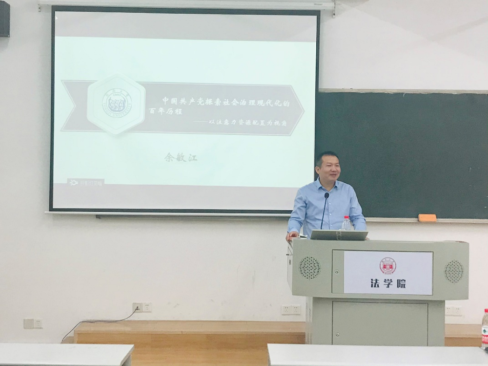 余敏江老师的精彩分享,让在座的同学们感受到了中国共产党在社会治理现代化百年历程探索中的努力,同时也引发了同学们的思考。在互动环节中,石一琨、叶玮、李丽东三位同学分别就中国社会治理现代化模式的推广、社会治理现代化中如何利用好互联网技术、智慧社区该如何建设等问题与余敏江老师进行了交流讨论。