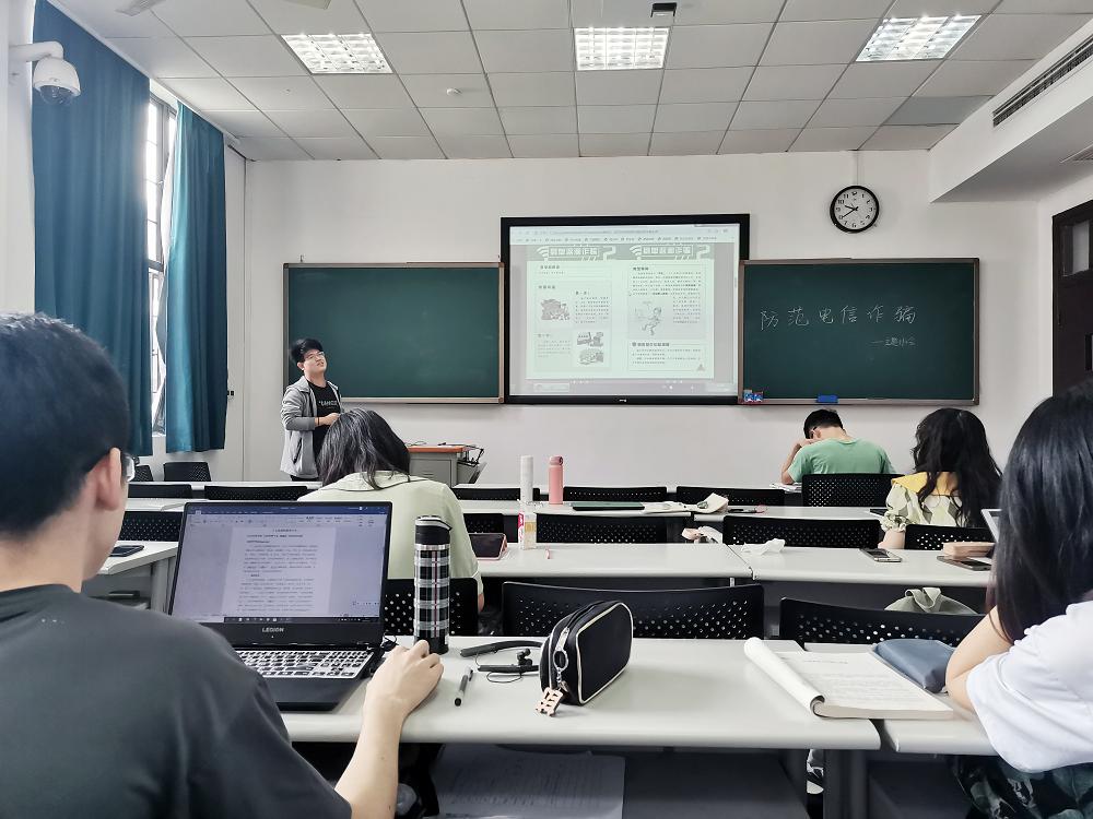 在系统地学习了当前常见的电信诈骗手法之后,同学们共同讨论了应对电信诈骗的方式和方法,纠正了当前大家存在的一些诸如“游戏代充值”、“二手交易走微信便宜”、“语言攻击电信诈骗电话”等误区,并提出了一些现阶段防范电信诈骗过程各环节的一些欠缺。会议最后,王琦珑对全体同学的讨论结果进行了总结,并针对各种诈骗方式提出了相应的处理方式。