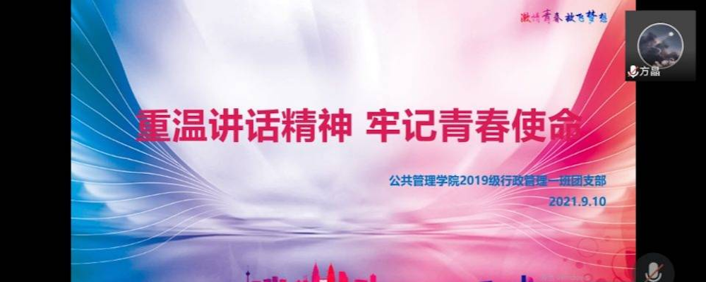 行政管理1901班积极响应院团委的号召,于9月10日开展了“重温讲话精神,牢记青春使命”的线上主题班会,本次班会由行政1901团支书车林林主持,行政管理1901班全体成员参加。