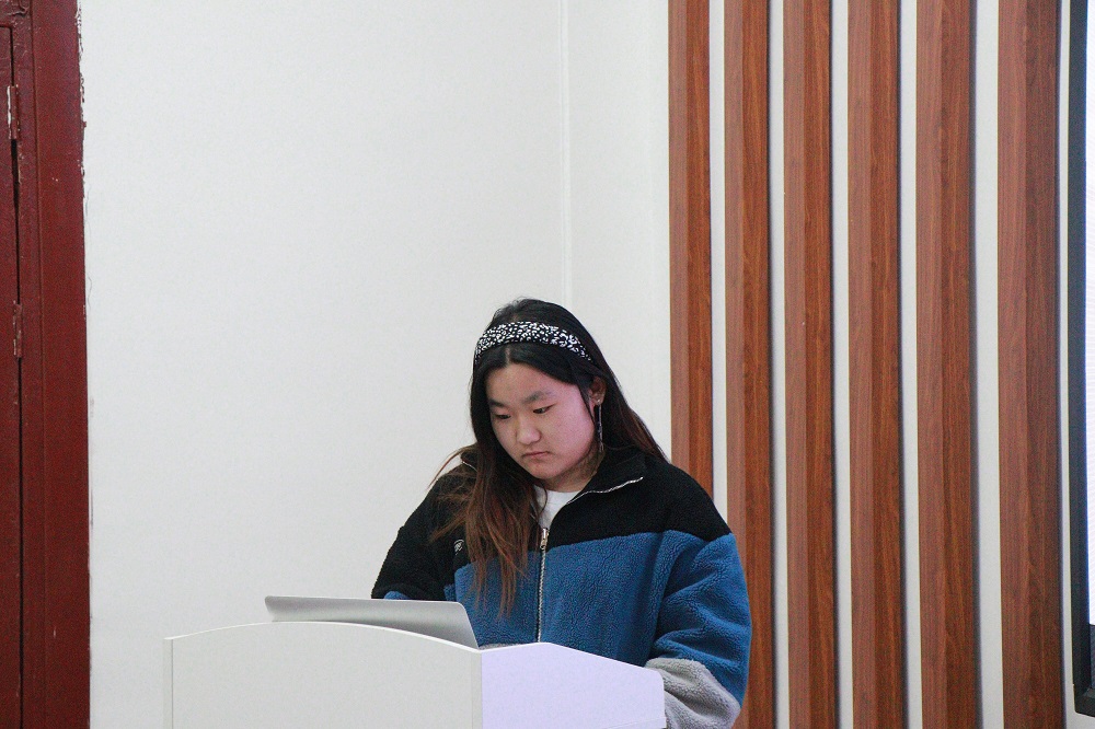 行管1901班鲁家琪同学进行优秀班集体答辩。他表示本班级在工作中认真学习党的政策方针,积极开展团日活动,确保同学们保持正确、坚定的思想政治方向。同时,班级同学积极参与学科竞赛,在许多大赛中积累经验,推动班级健康向上、积极发展。
