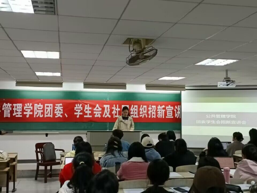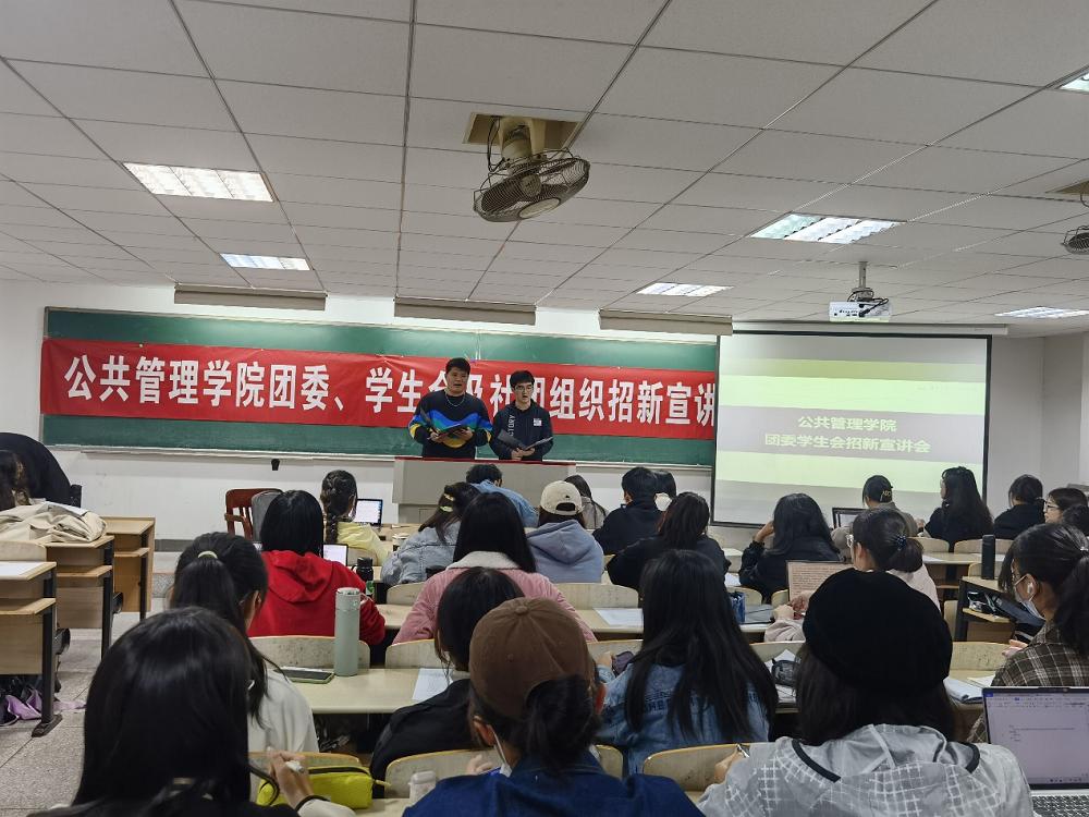 在综合楼506教室召开团委、学生会及学生团体招新宣讲会。本次会议由团委办公室负责人王麒隆与学生会活动部负责人蔡朋城主持,本科生辅导员胡春晖老师、团委、学生会、各学生团体代表以及2022级全体新生参加会议。